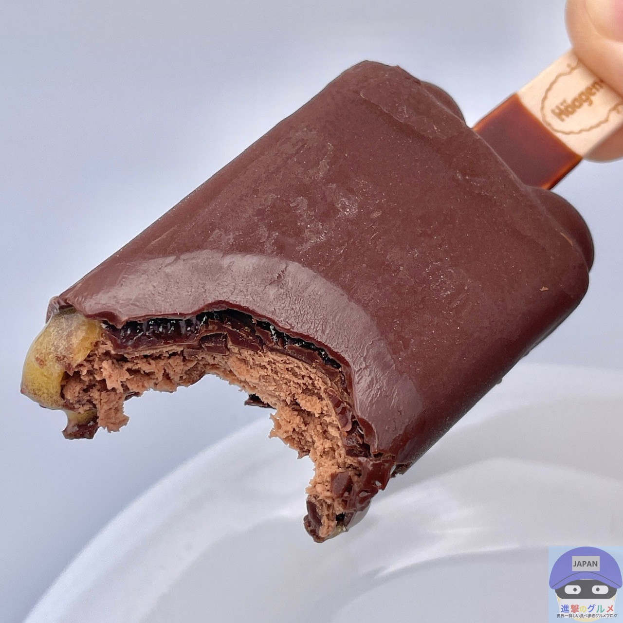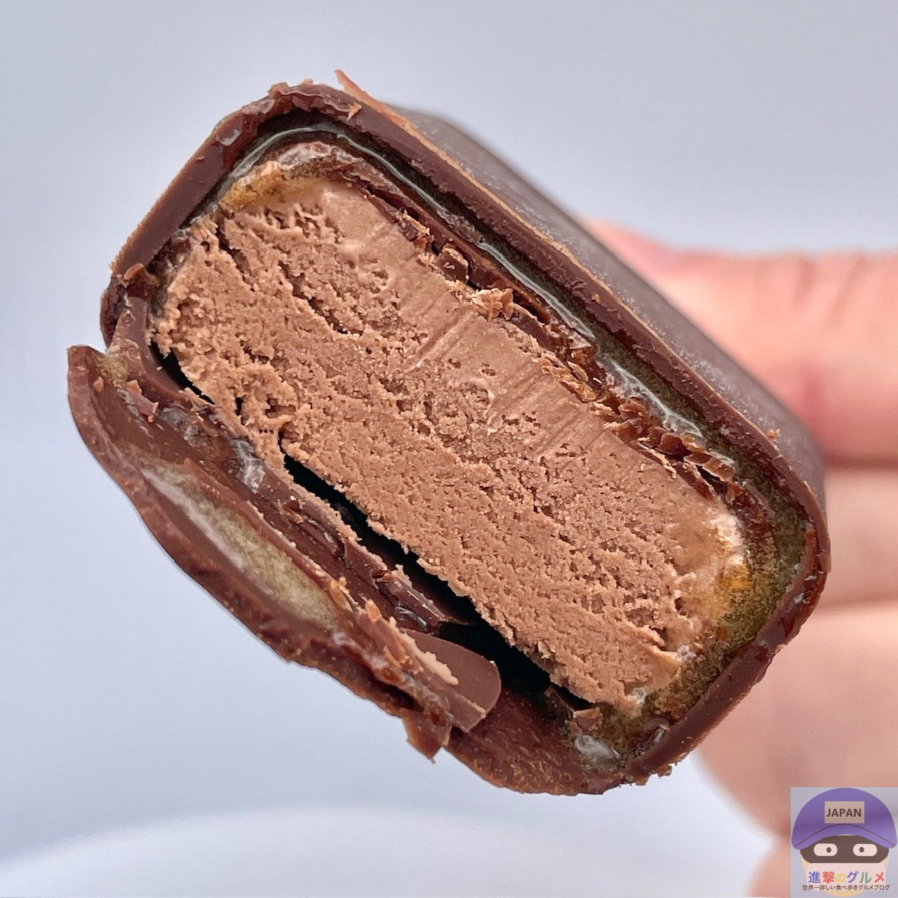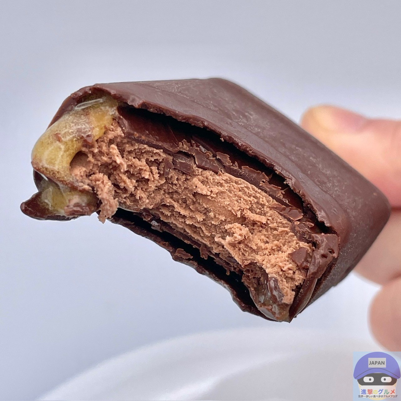 チョコレートがパリパリとかための食感、たっぷりチョコのコクと香りが良く、とろけたチョコレートアイスクリームの濃厚な味わいもクセになります。