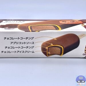 チョコレートアイスクリームとアプリコットソースを、2つの食感のチョコレートでコーティングしています。