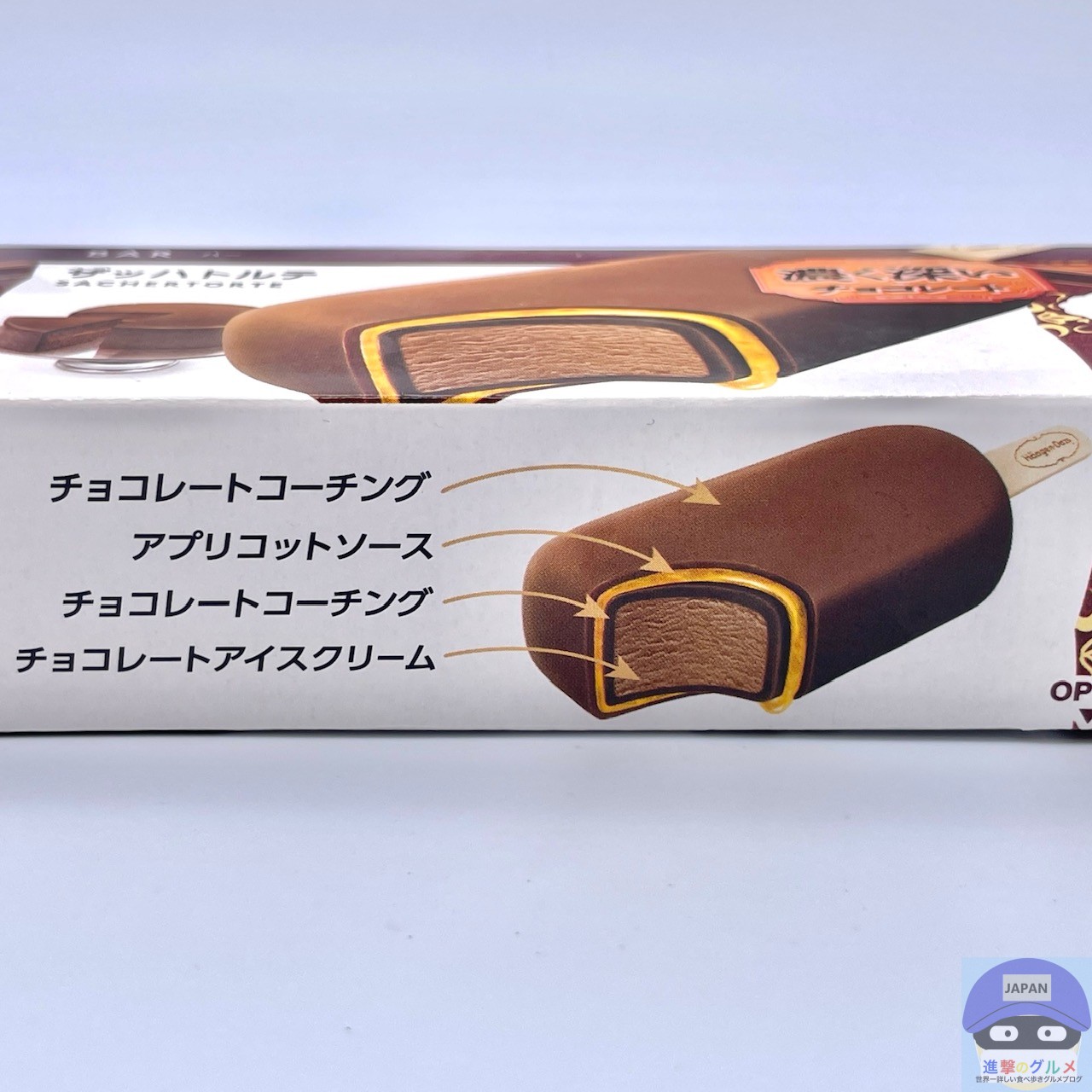 チョコレートケーキにアプリコットソースをはさんだ、オーストリア発祥のスイーツ「ザッハトルテ」から着想を得た、濃厚な味わいのチョコレートと甘酸っぱいアプリコットソースがアクセントのアイスクリームバーです。