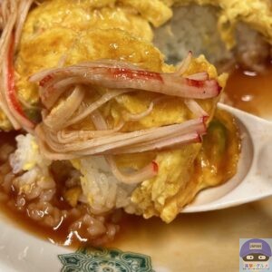 ご飯にふんわり玉子焼きをのせて、特製甘酢タレをかけた天津飯です。