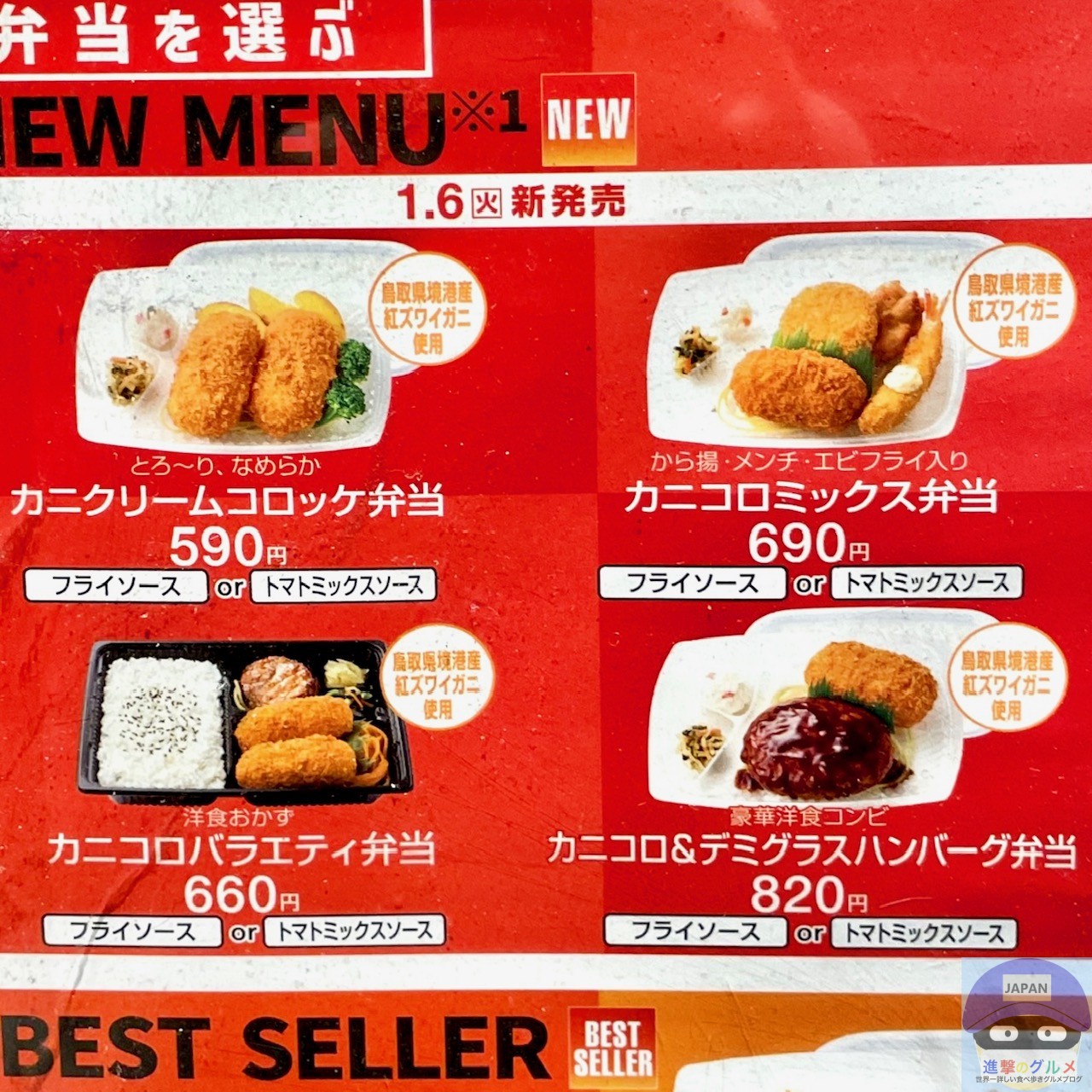 2026年1月6日より、「ほっともっと(Hotto Motto)」が新メニュー「カニクリームコロッケ弁当」を全国で販売開始しました。