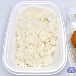 時間帯によっては、出来合いの弁当とライスが並びます。