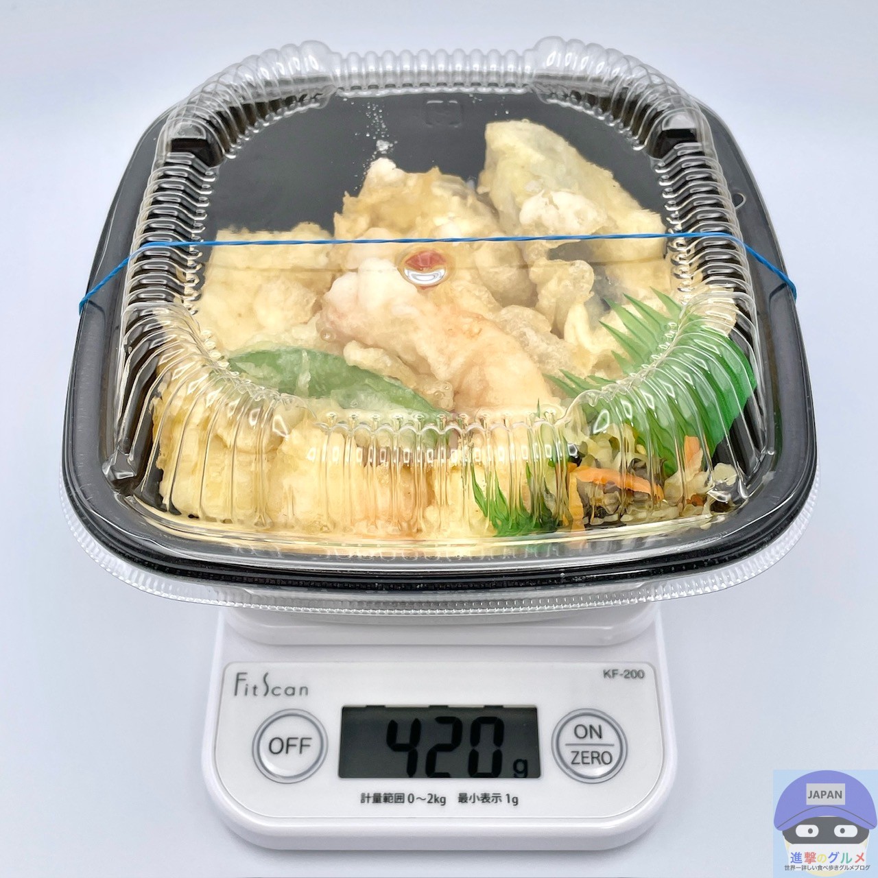 重さをはかると、容器を含めて420gでした。