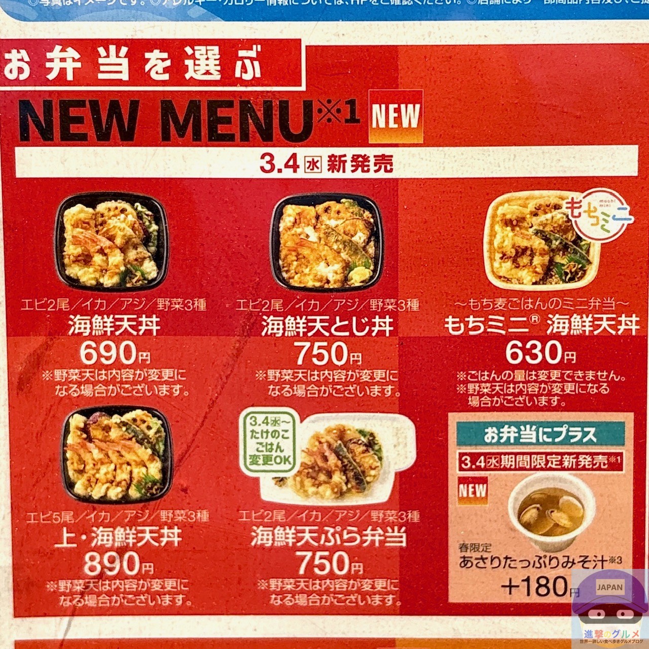 2026年3月4日より、「ほっともっと(Hotto Motto)」が新メニュー「海鮮天丼」を全国で販売開始しました。