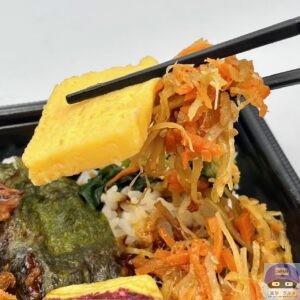 さらに、さつまいも、だし巻き玉子、きんぴらごぼうなどの和惣菜も添え、この一品で贅沢な気分を楽しめます。