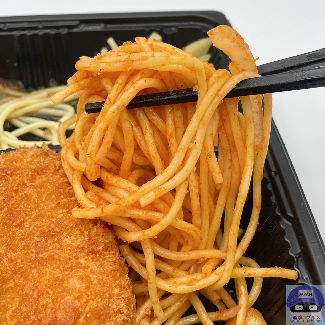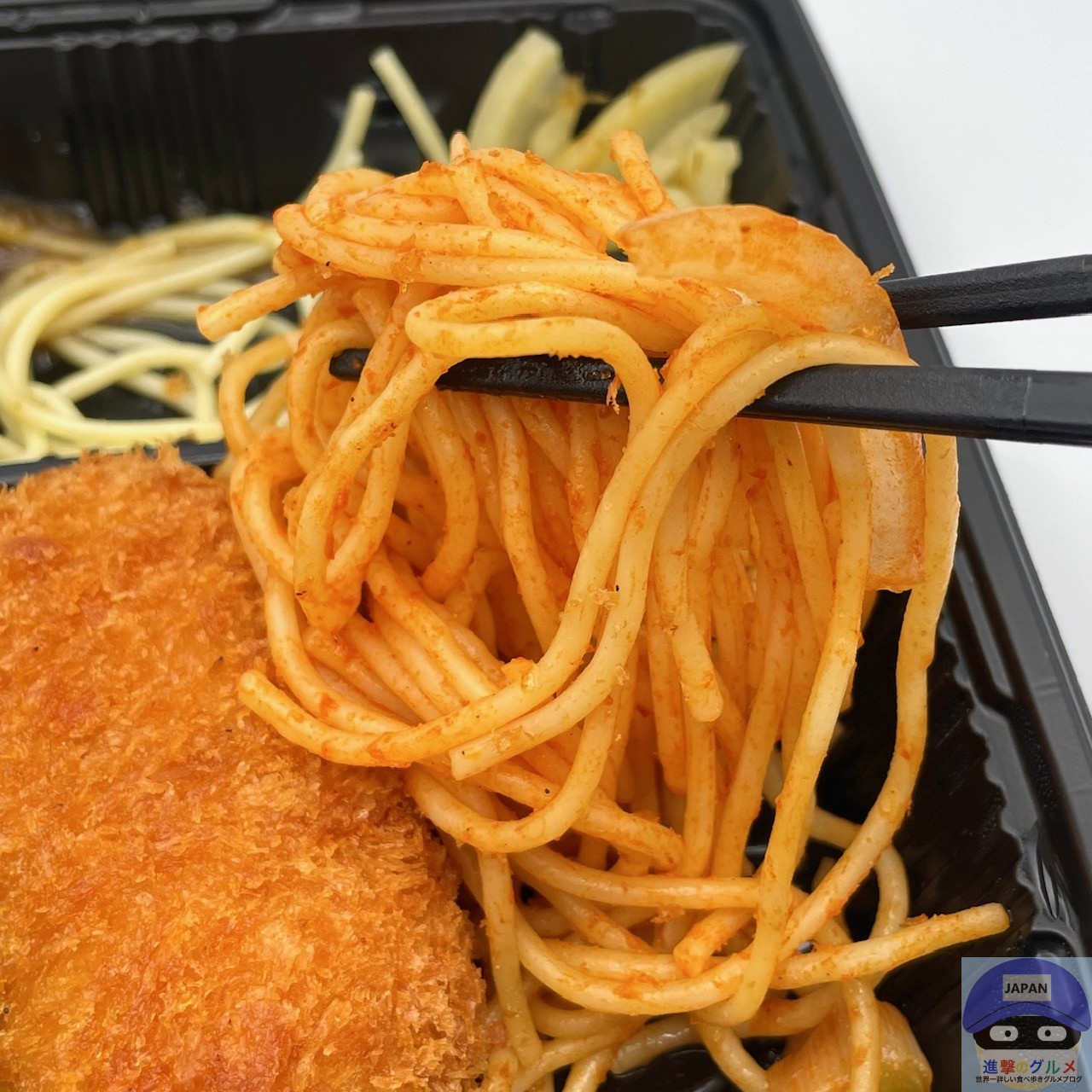 ナポリタンは、ピリ辛で小量のソースが絡んだ素朴な味わい、玉ねぎがシャキッとしています。