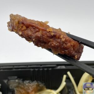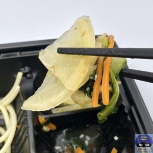 ミニハンバーグは、お弁当用の子供向けに味付けされた普通の味わい、少しシャキッとした和風おろしソースがかかっています。