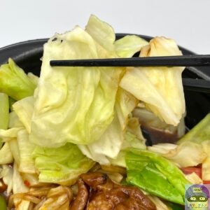 たっぷりのキャベツは、温かくてシャキシャキ食感、素材の味わいと少し甘みを感じます。