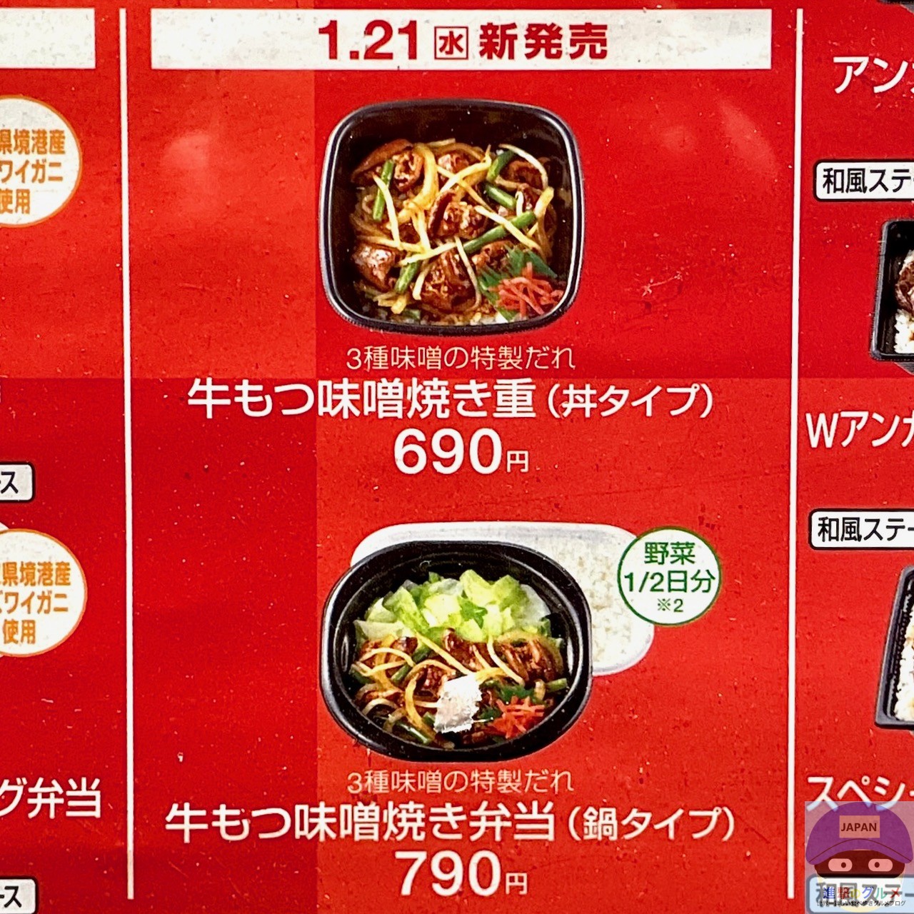 メニューは、鍋タイプの「牛もつ味噌焼き弁当(790円)」、丼タイプの「牛もつ味噌焼き重(690円)」があります。