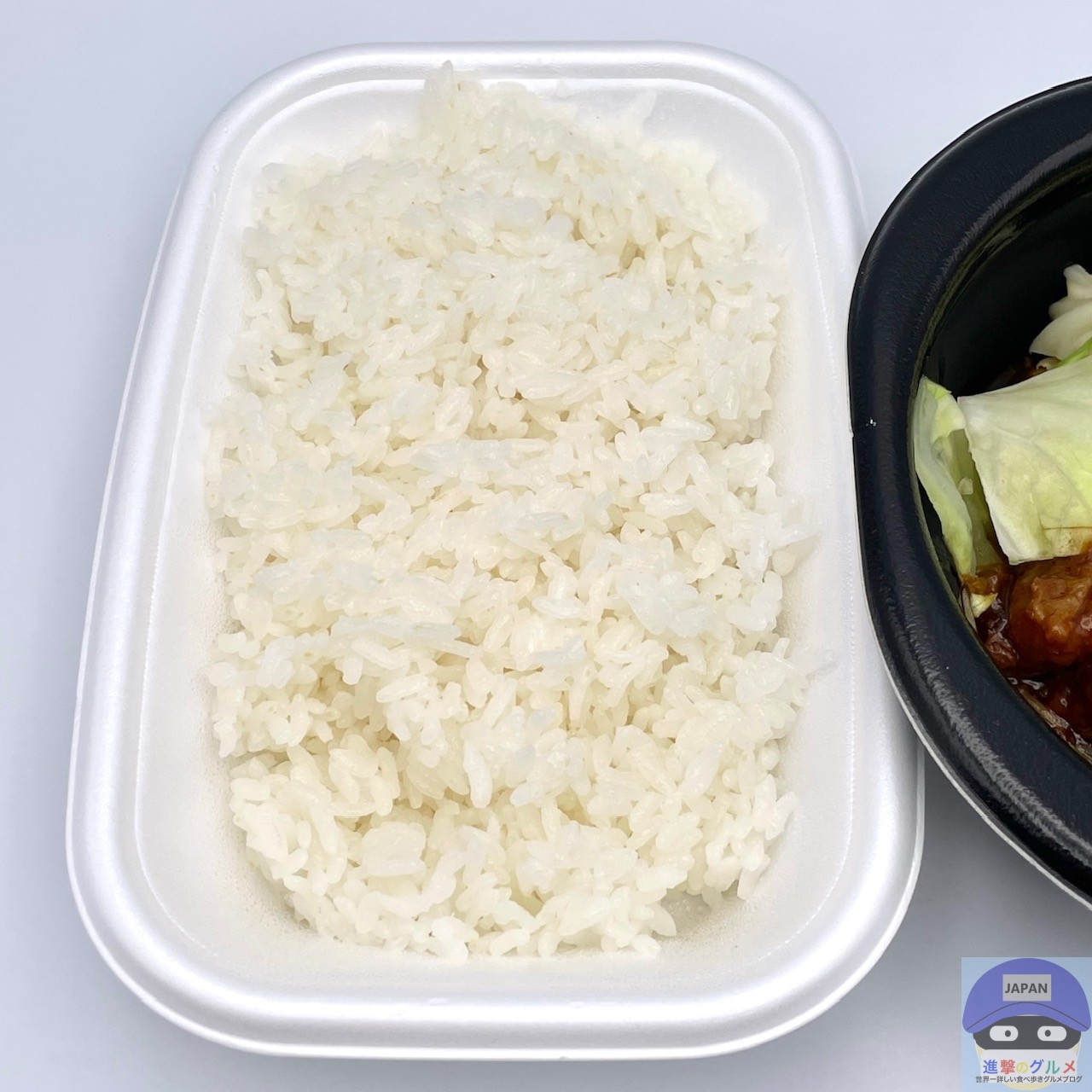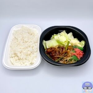 時間帯によっては、出来合いの弁当とライスが並びます。