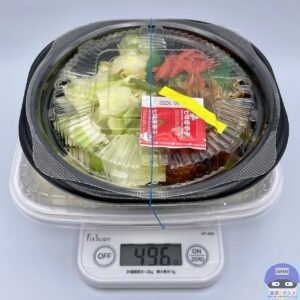 袋から中身を取り出し、重さをはかると、容器を含めて496gでした。