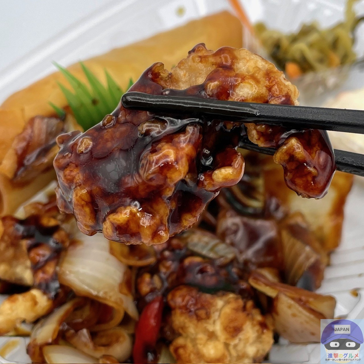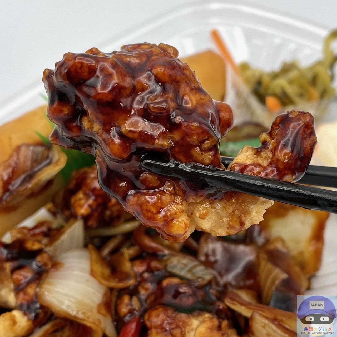少しサクッとやわらかい唐揚げ、黒酢の酸味とコクのある特製タレが食欲を刺激します。