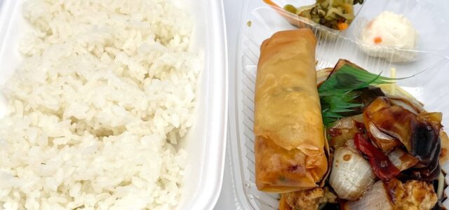 今回は、「黒酢酢豚&春巻弁当(690円)」にしました。