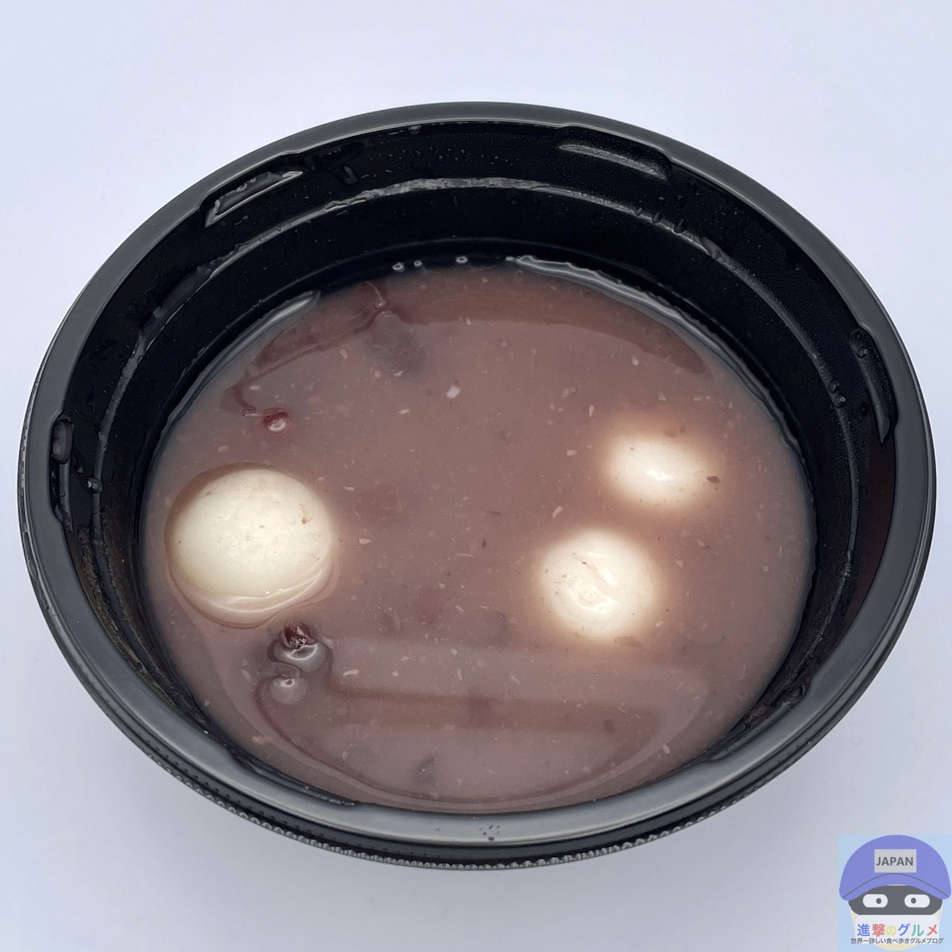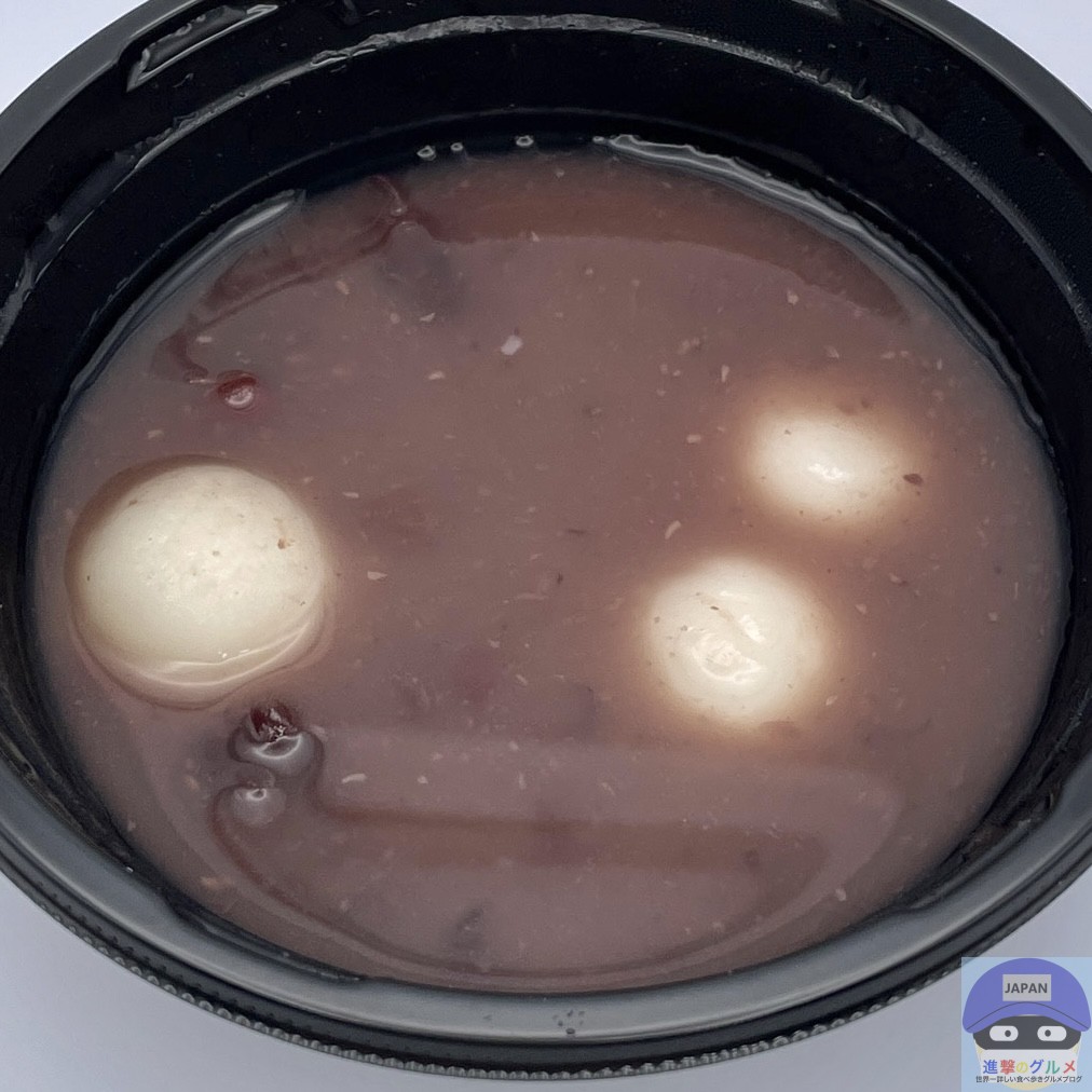 北海道産小豆100%のつぶあんたっぷり、白玉3個が入ったシンプルな見た目の「温かいスイーツ」です。