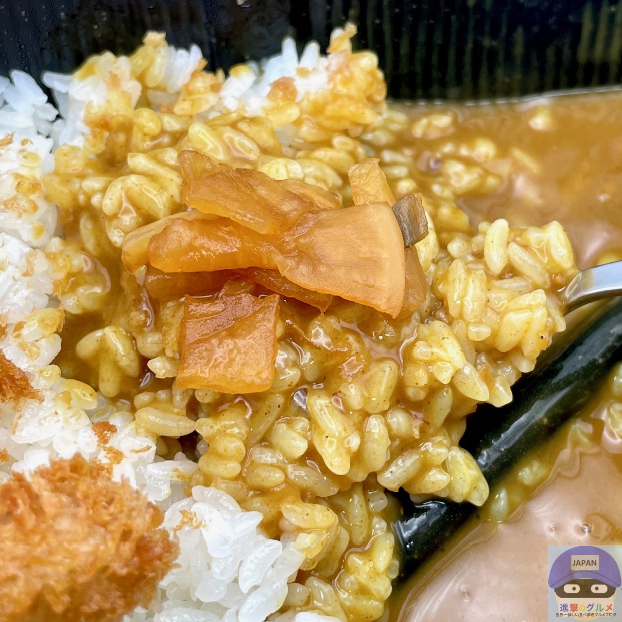 ライス300g、豚ヒレカツ、細かい豚肉が入ったポークカレーソース、福神漬けの組み合わせです。