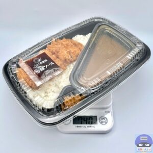 芳醇ソースとスプーンが付いて、重さをはかると、容器を含めて740gでした。