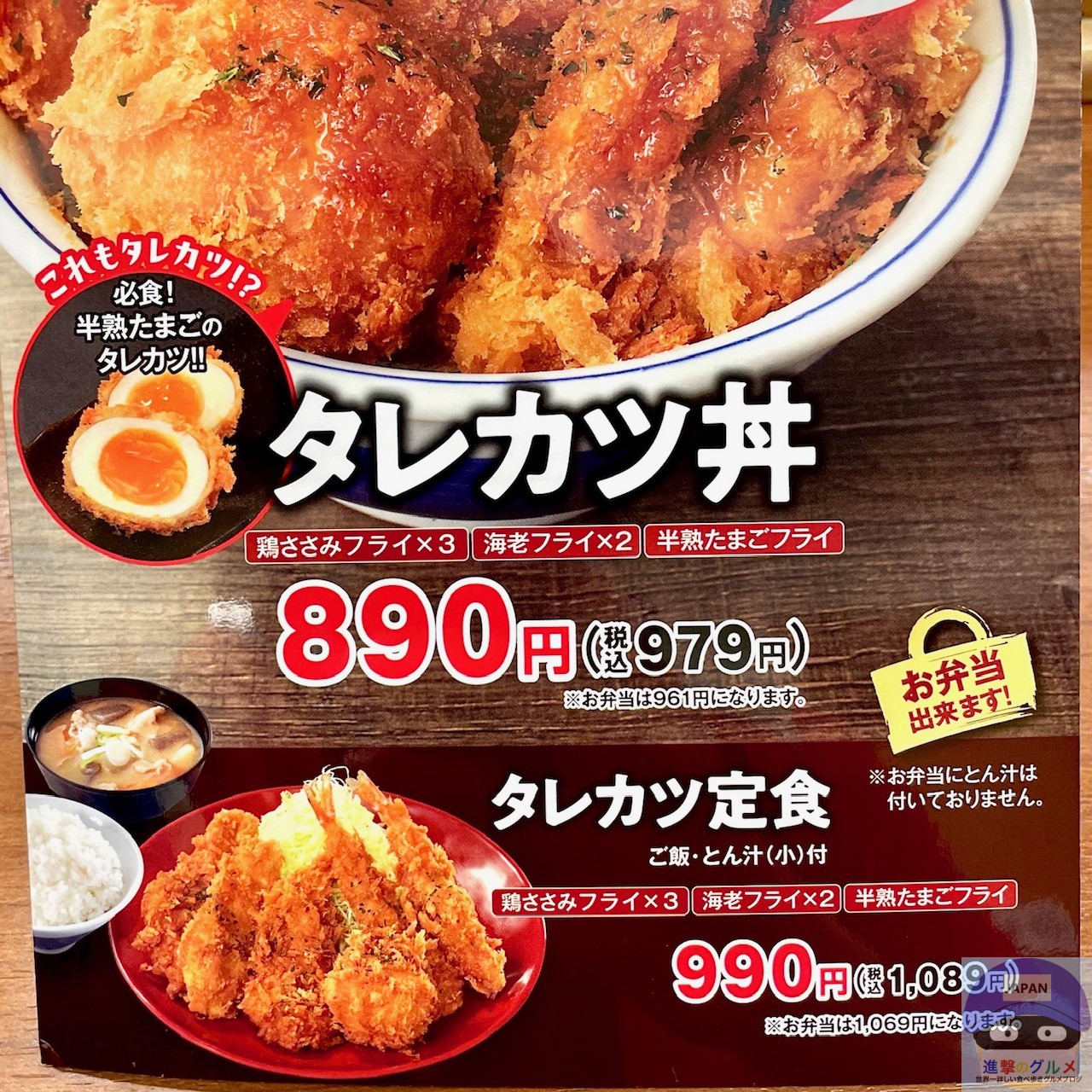 メニューは、「タレカツ丼(979円)」、「タレカツ定食(1089円)」があります。
