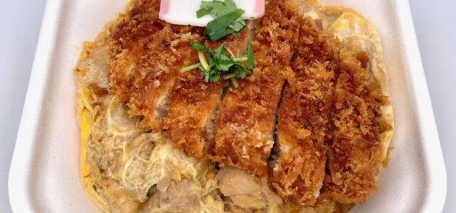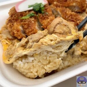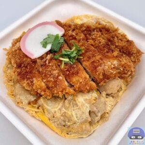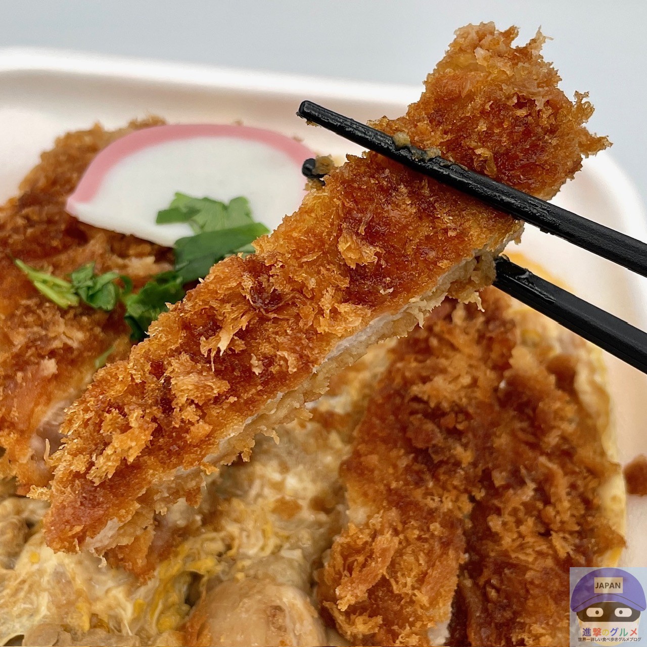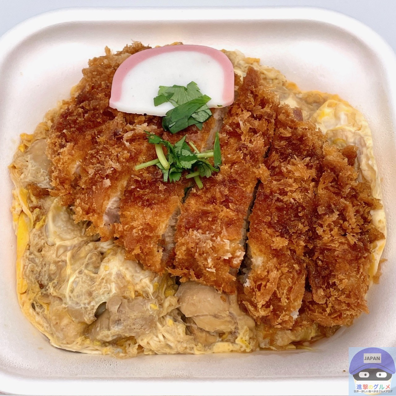 鶏の旨みとかつおの風味が溶け込んだ割り下で仕立てた親子丼の上に、サクサクに揚げたロースカツを豪快にのせた一杯です。