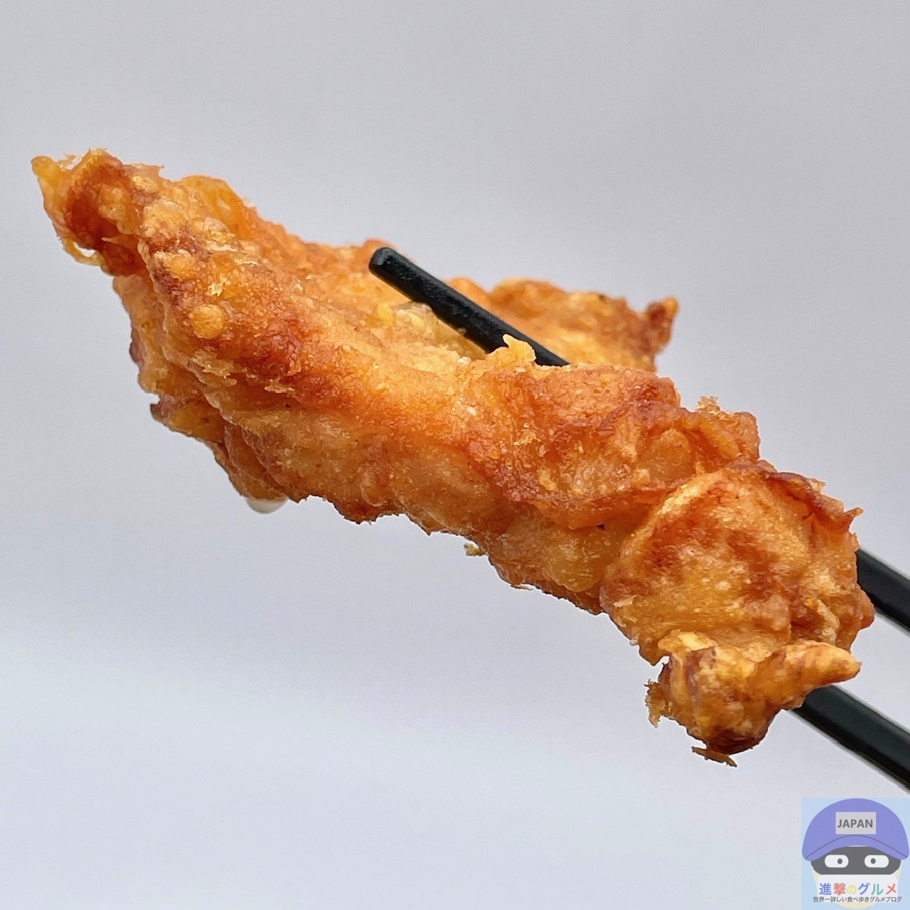 サクサクッと衣が多めで香ばしく、やわらかいしっとりした鶏肉の味わいを感じます。