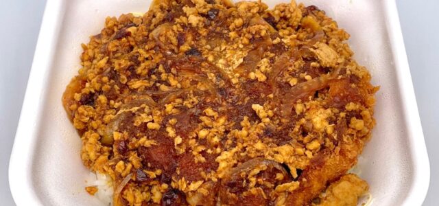 ※持ち帰り・テイクアウトの場合は、「肉あんかけロースカツ丼弁当(961円)」です。