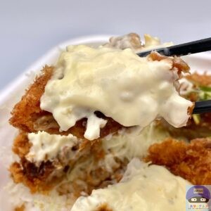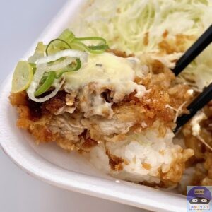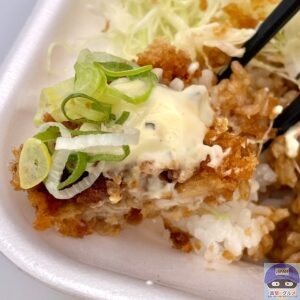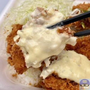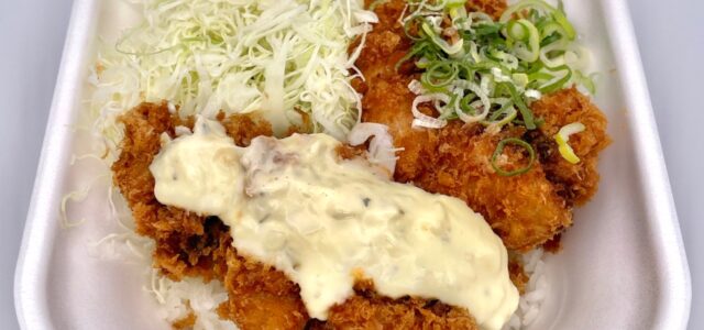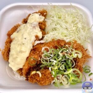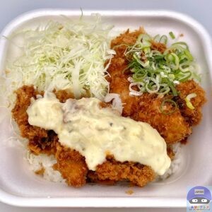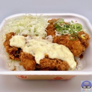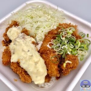 チキンカツを2枚使用し、特製ウスターソースとタルタルソースをかけた、食べごたえのある丼です。