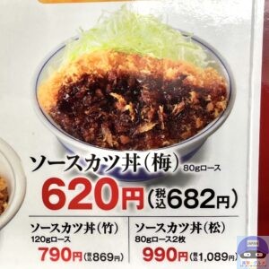 2025年10月10日に価格改定を実施し、定番メニュー「ソースカツ丼・梅」「ソースカツ丼・竹」よりもボリュームのあるサイズが新たに加わりました。