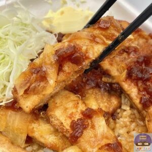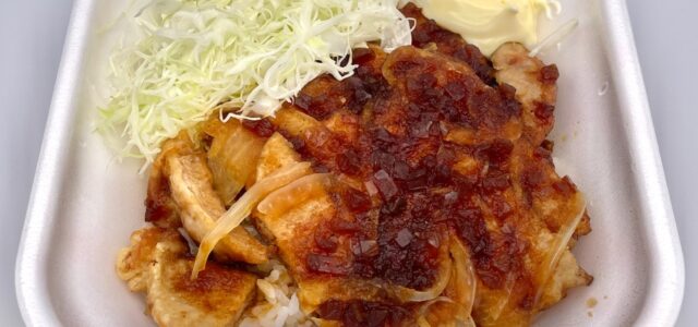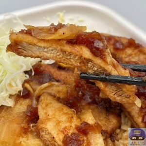 やわらかい肉質で豚肉の旨みをしっかり感じ、濃いめの醤油ダレと玉ねぎの甘みが印象的です。