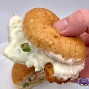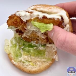 ふんわりした全粒粉バンズ、周りの衣が少しカリッと、しっとりやわらかいチキンフィレで食べごたえ抜群です。