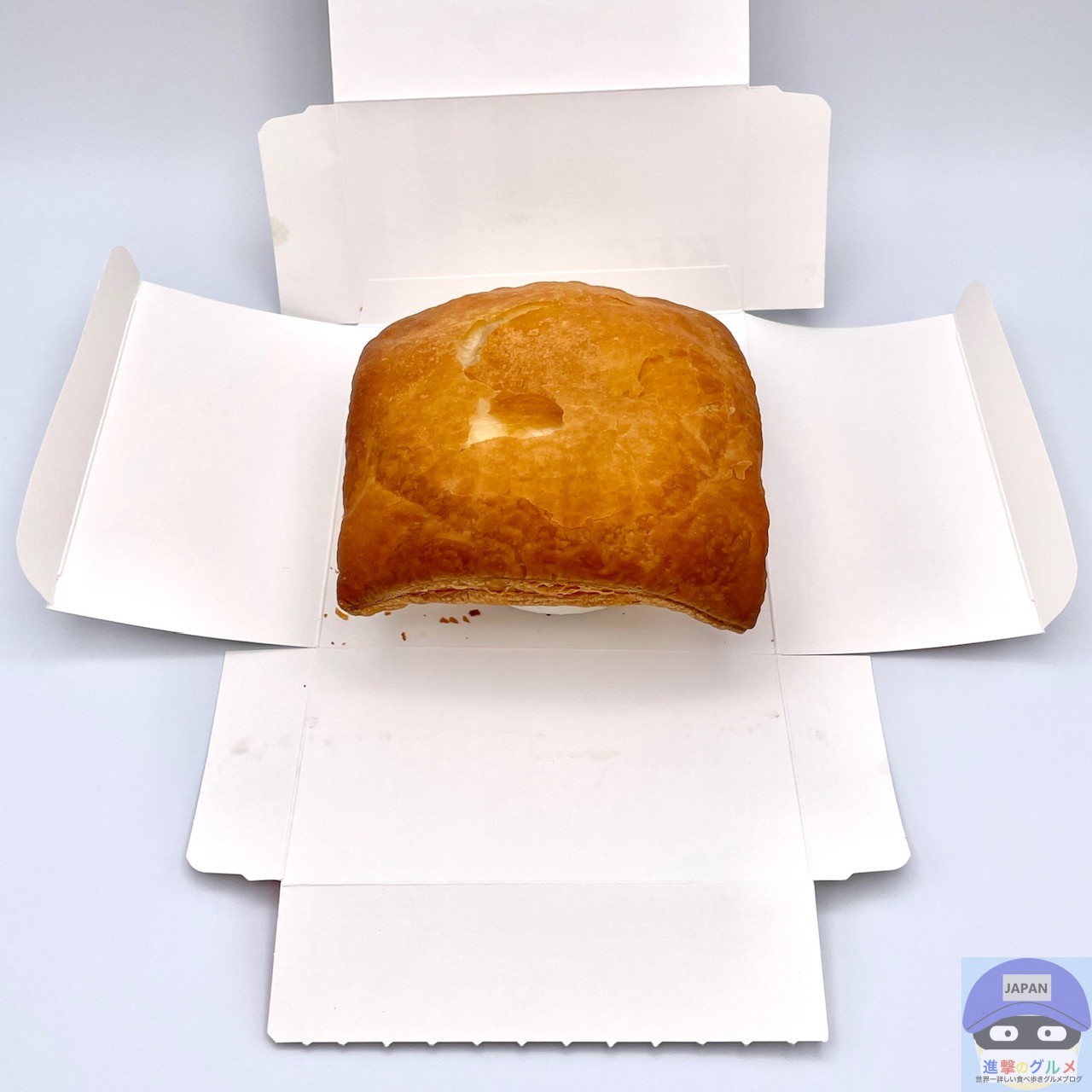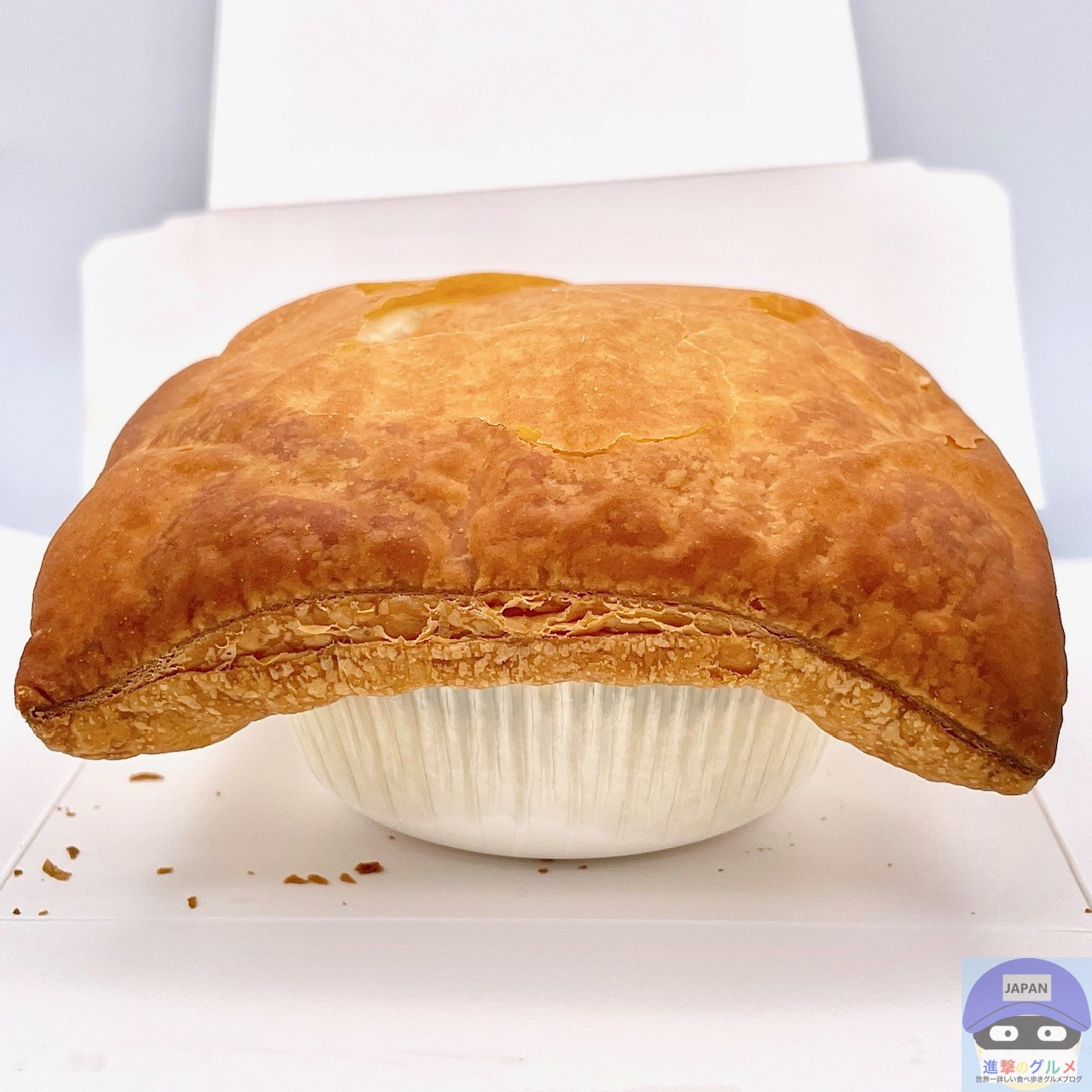 箱をあけると、容器からはみ出るほど大きなパイ生地が目を引きます。