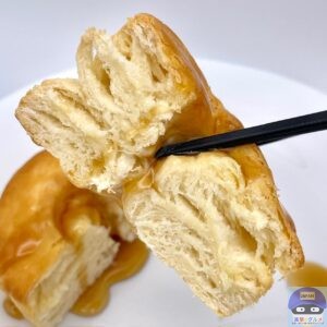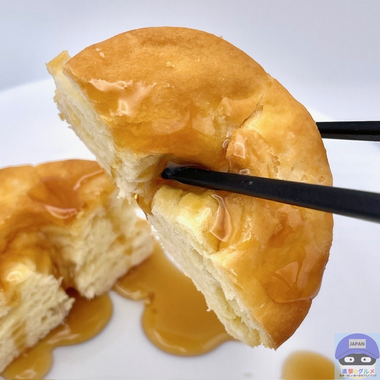 風味よい甘さの特製ハニーメイプルが生地に染み込むわけではないため、全体としては一体感がなく、生地とシロップが別々の味わいです。