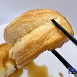表面さっくり、やさしい甘さと生地自体の味わいを感じ、生地のパサつきで水分が欲しくなります。