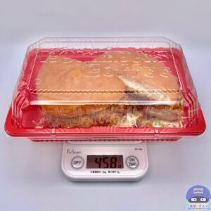 重さをはかると、容器を含めて458gでした。