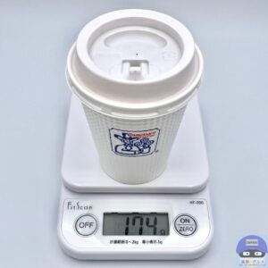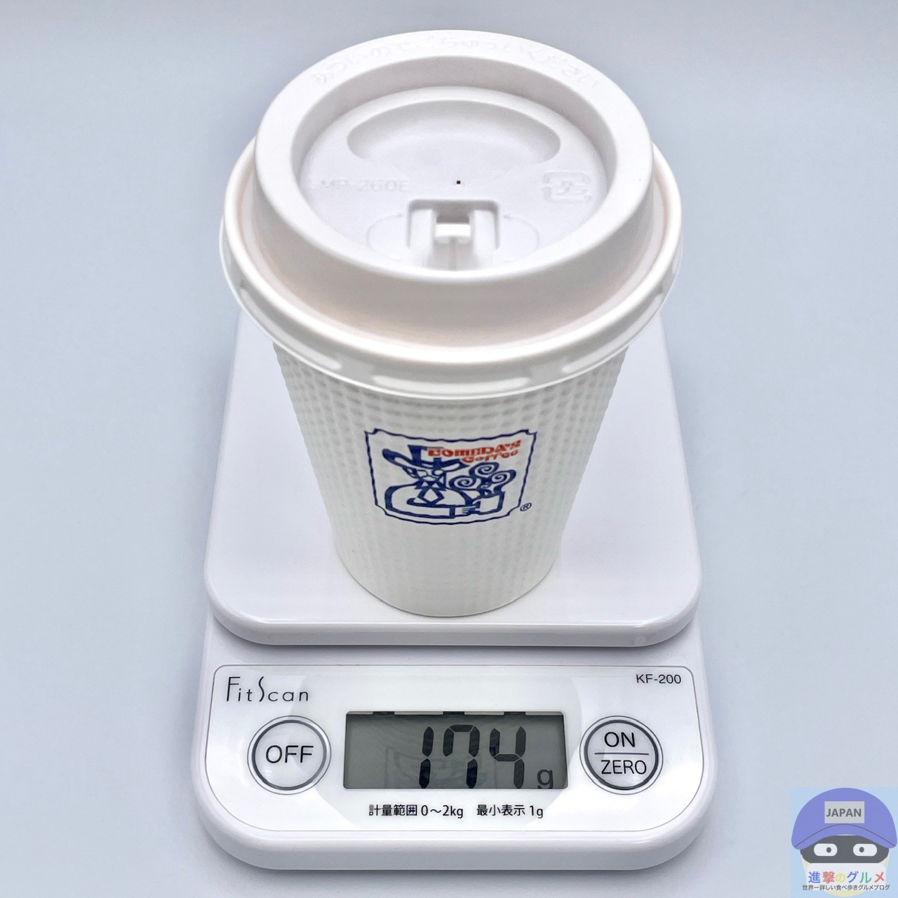 ミネストローネの重さをはかると、容器を含めて174gでした。
