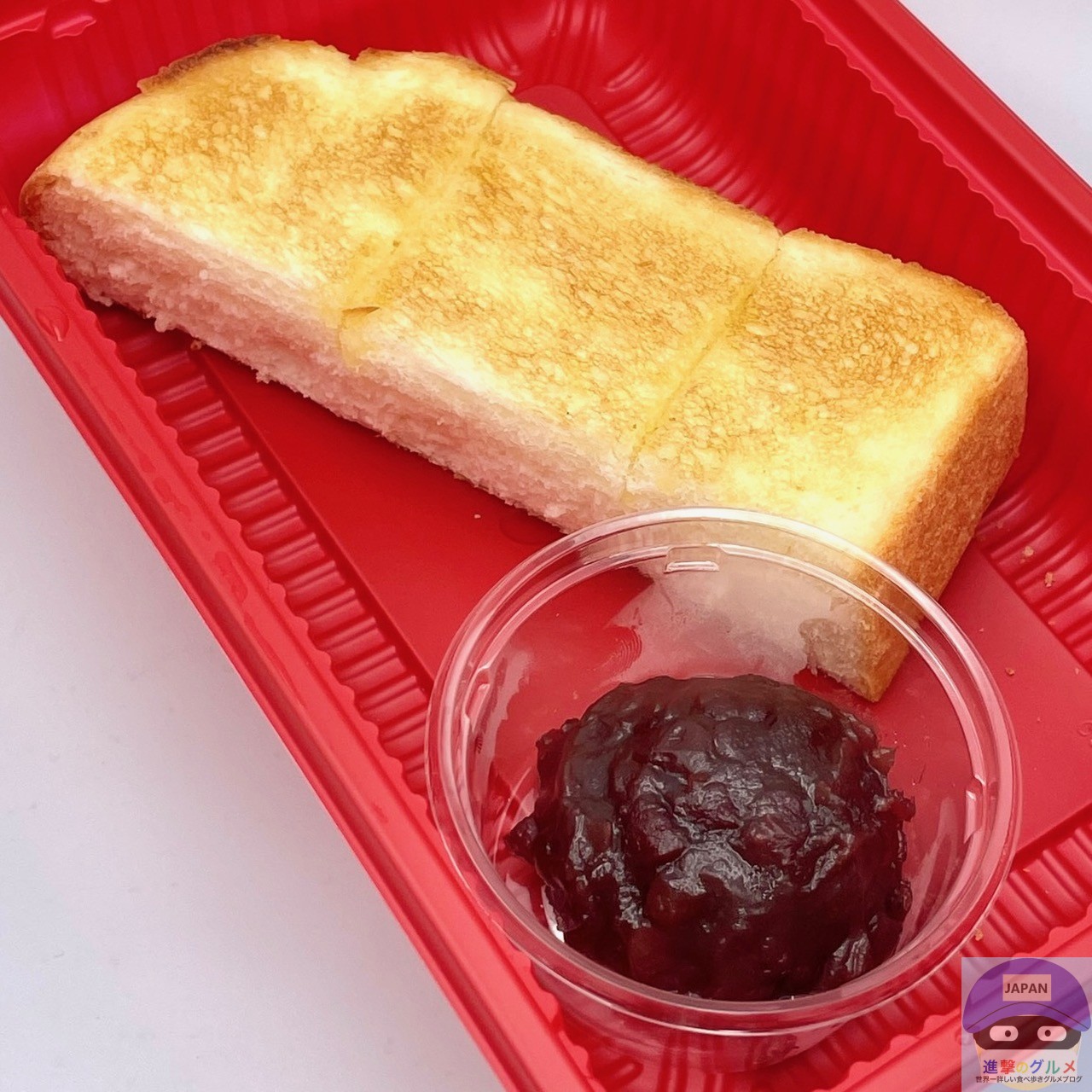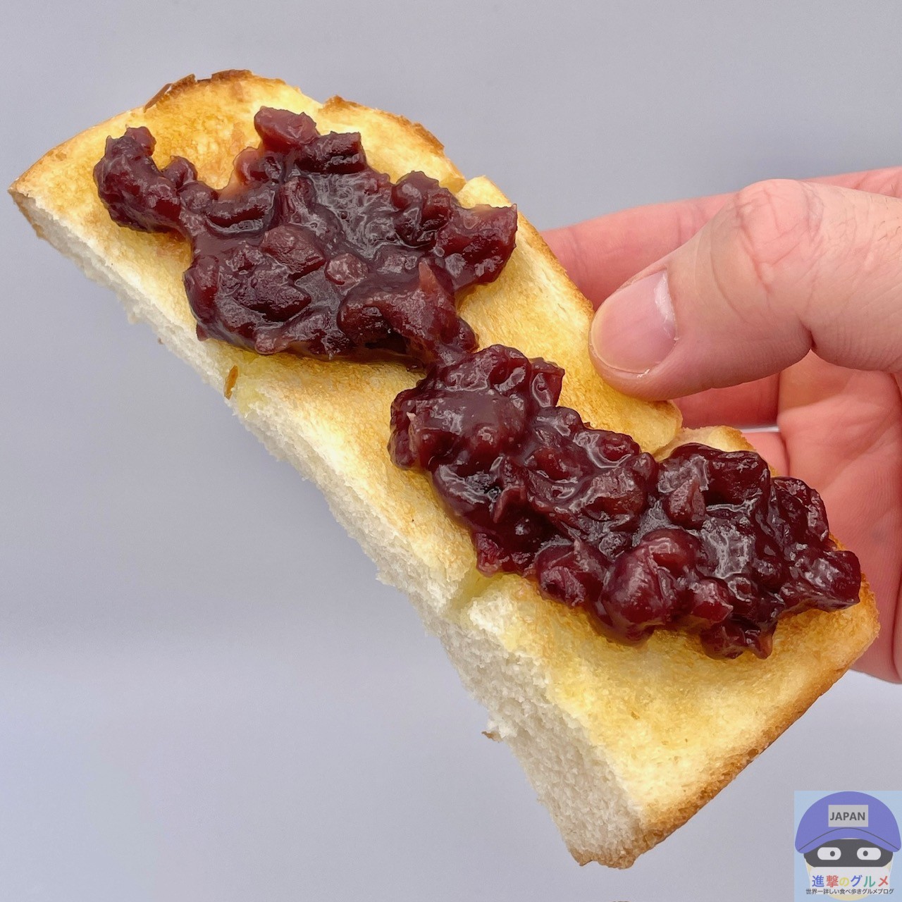 山食パンにコメダ特製おぐらあんをのせて食べます。