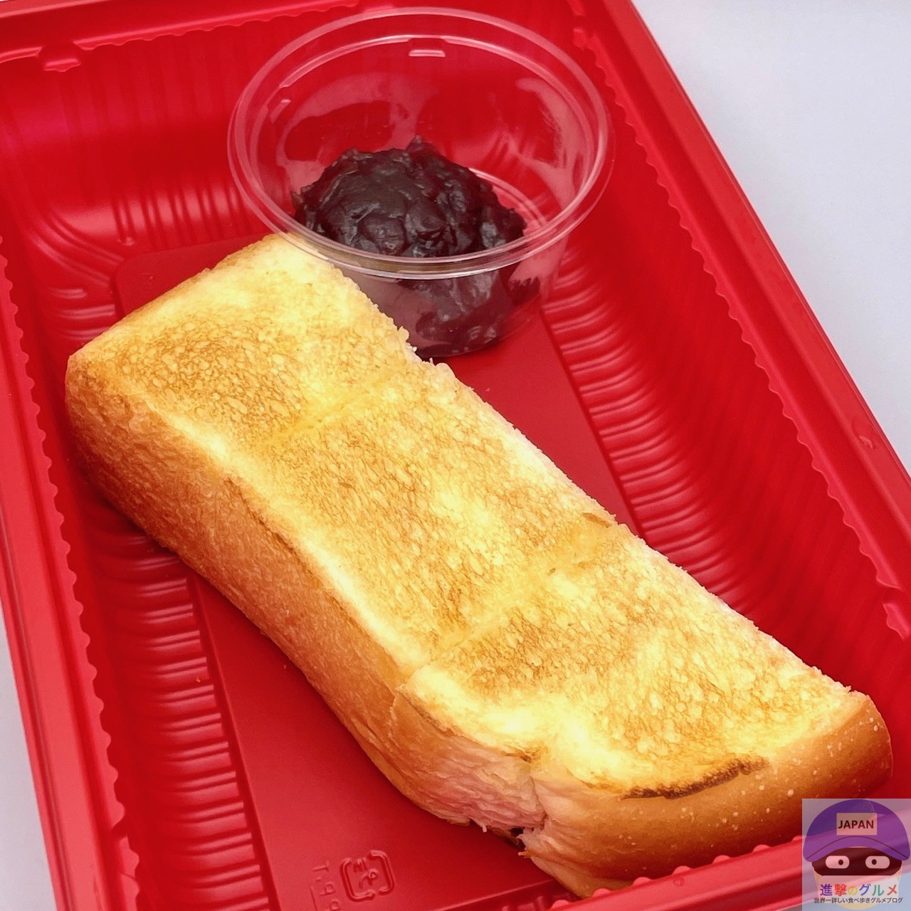 バターが塗られた山食パン、コメダ特製おぐらあんです。