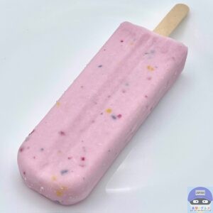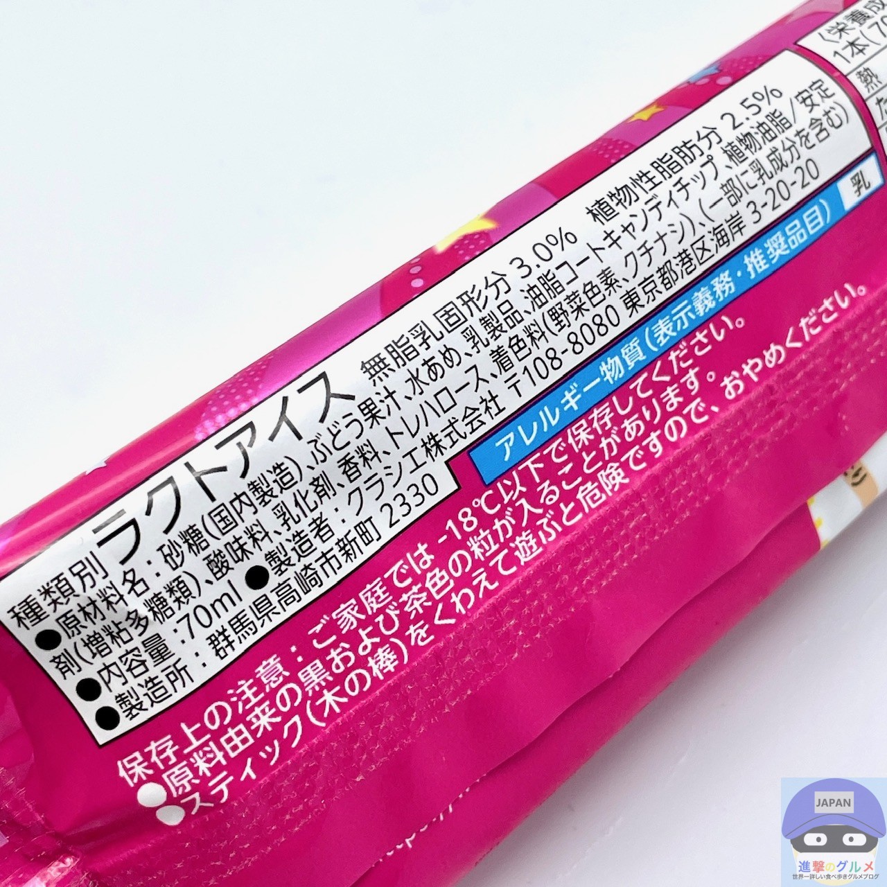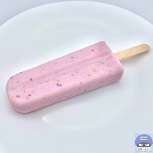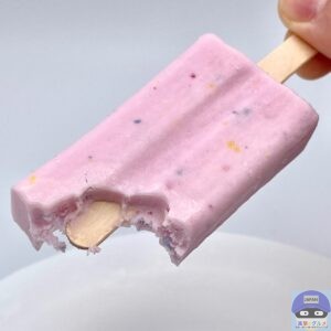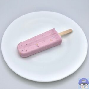 ひんやりシャリッと軽めの歯触りでとろけ、駄菓子のぶどう味の甘い味わいです。