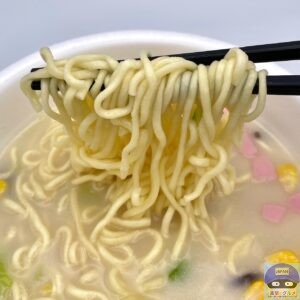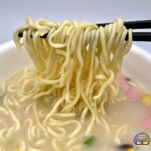 熱々で程よい歯ごたえ、カップ麺の油揚げめん自体の馴染みの味わいを感じます。