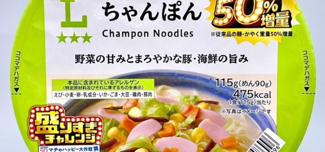 【ローソン】ちゃんぽん 50%増量(創業50周年 盛りすぎチャレンジ)【新作コンビニカップ麺】