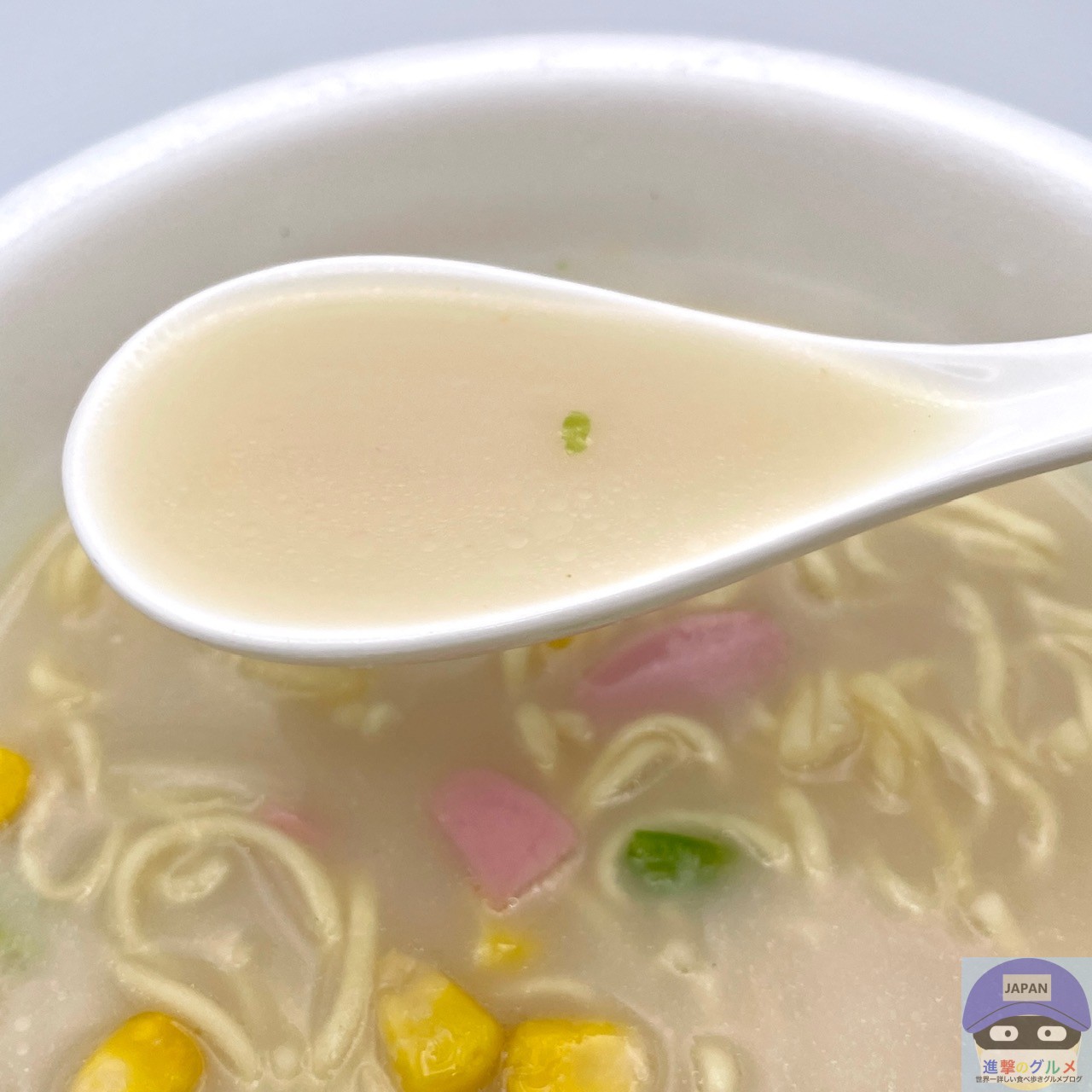 さらっとしたスープは、クリーミーや濃厚系ではなく、ややまろやかな旨みがあってペッパーの効いたちゃんぽん風です。