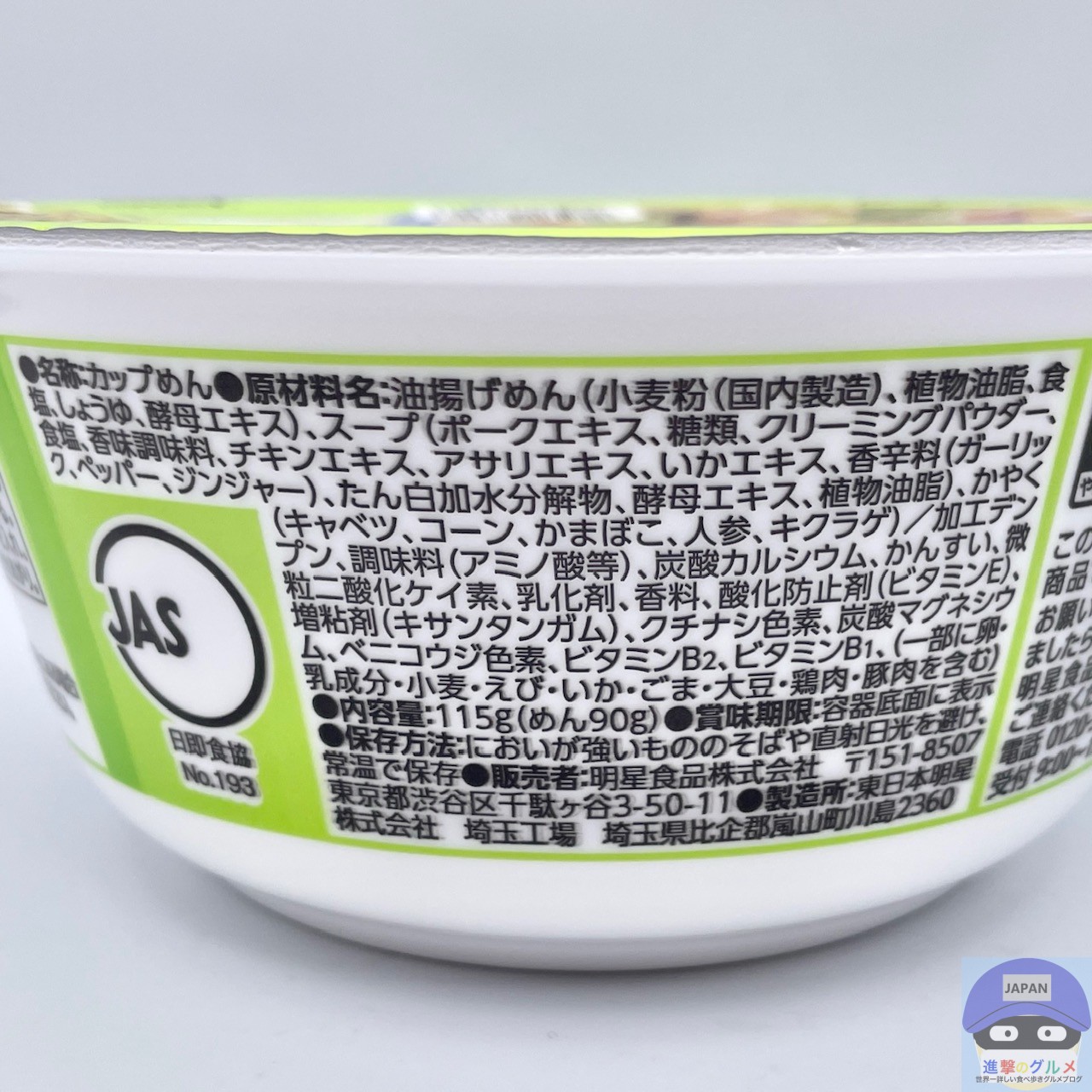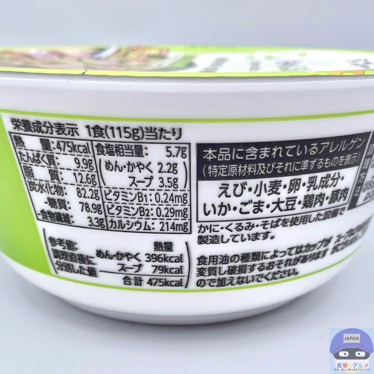 内容量は115g(めん90g)、カロリーは475kcalです。
