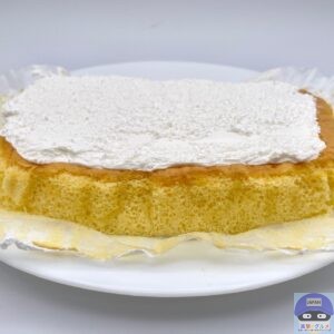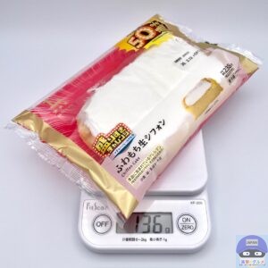 今回で7回目、お得な「盛りすぎチャレンジ」により、従来品の「ふわもち生シフォン」と比較し、価格据え置きで総重量が1.5倍、50%増量しました。