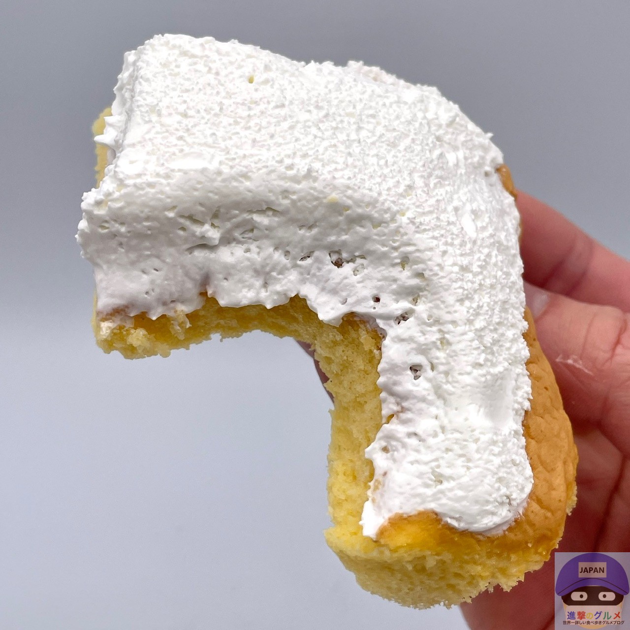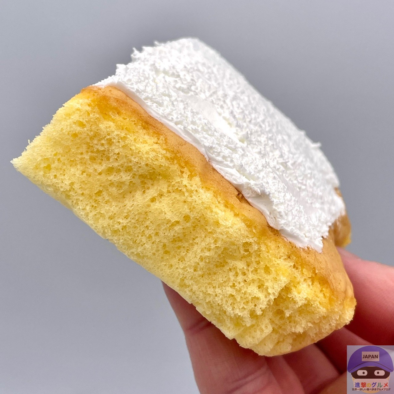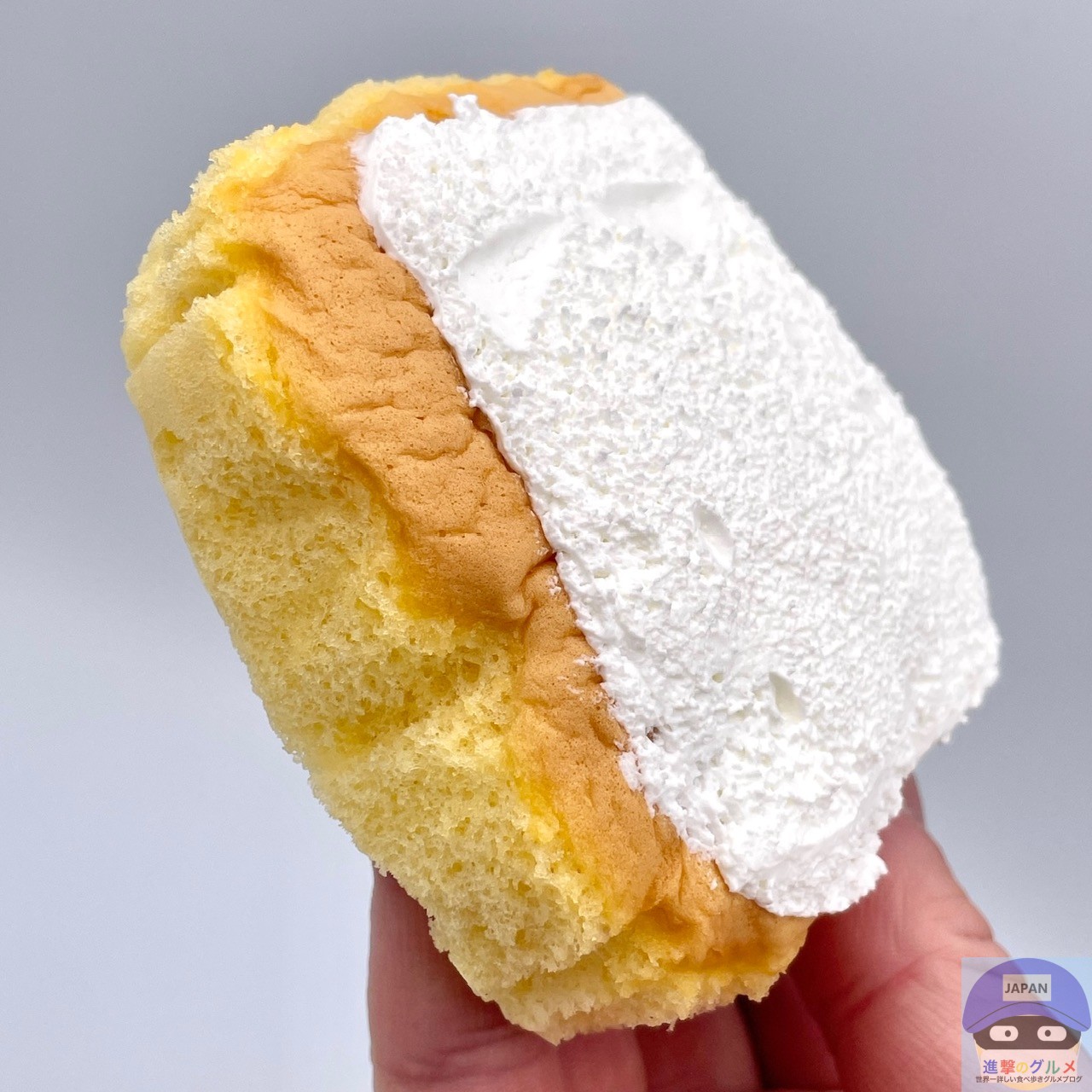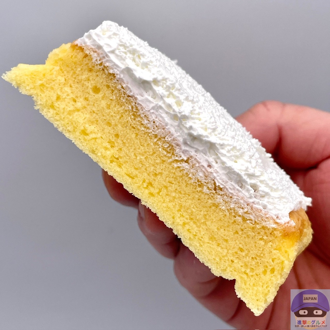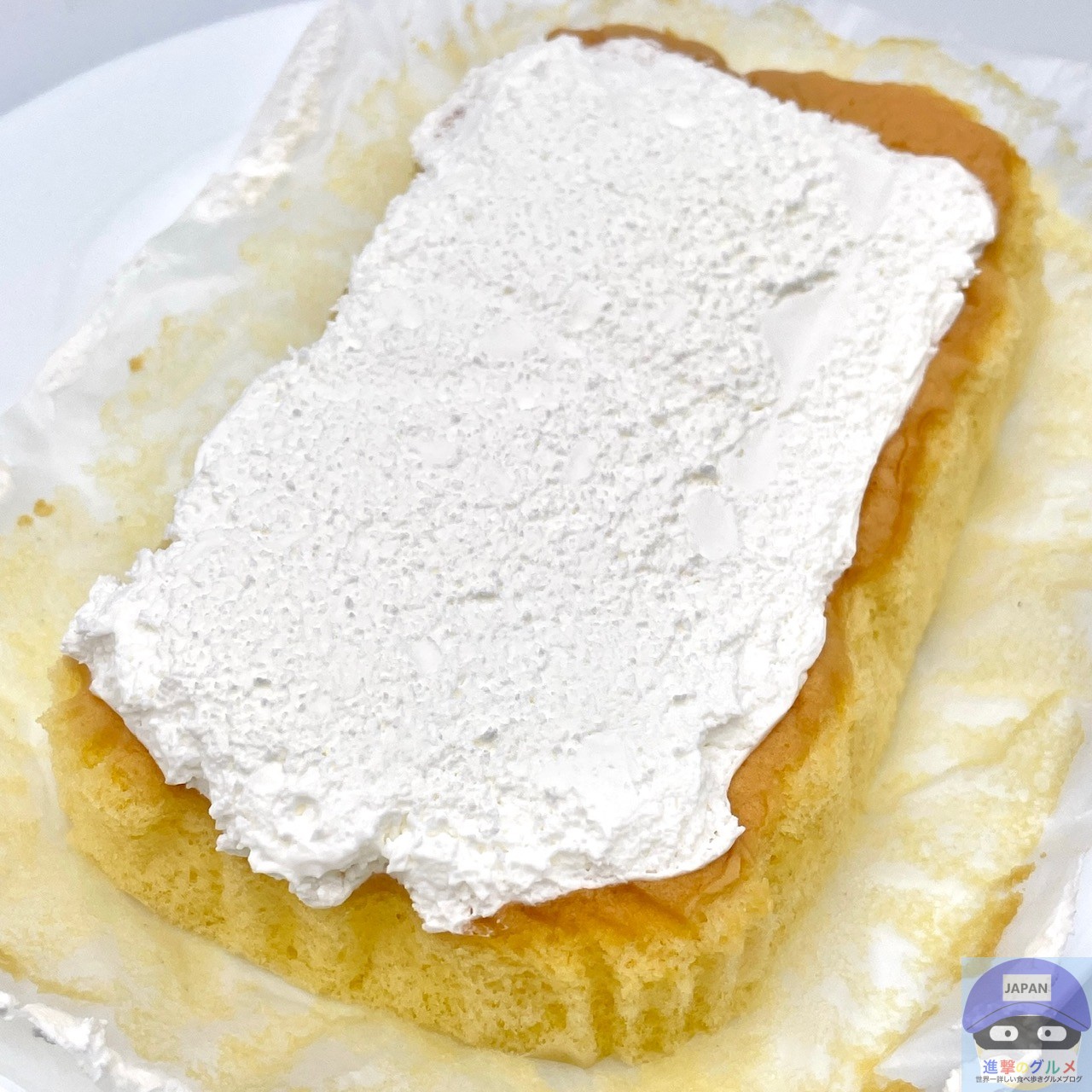 ふんわりして軽く、すっと溶けるホイップクリームのすっきりした甘さ、やわらかくて少しもちっとしっとりしたシフォンのやさしい甘みを感じます。