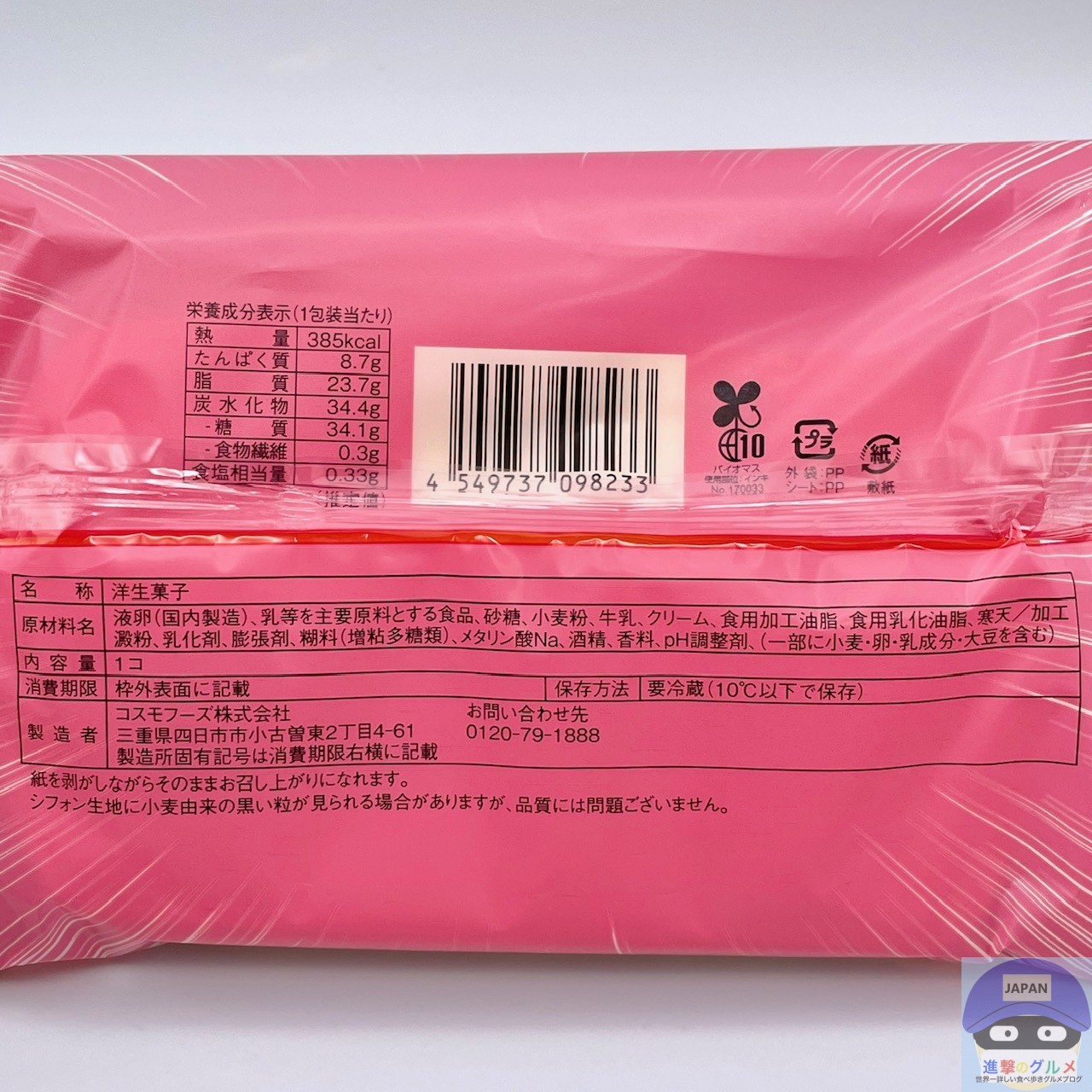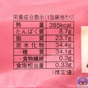 カロリーは385kcal、重さは包装を含めて136gです。