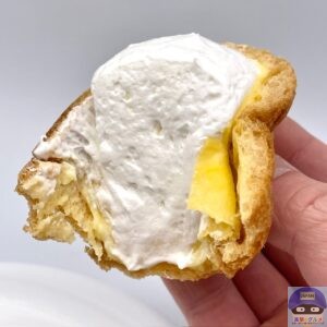 ふんわりしたホイップクリームの少しコクとしっかりした甘さ、なめらかなカスタードクリームの風味が良いです。
