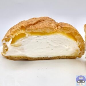 卵のコクとなめらかな口当たりのカスタードと、北海道産練乳を使用したホイップクリームの2層仕立てのシュークリームです。