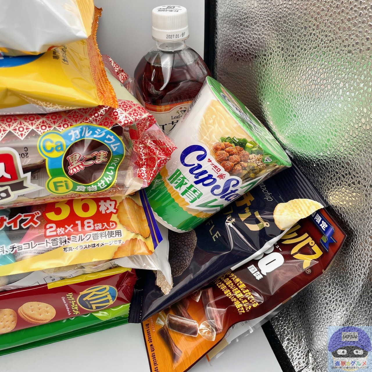 カップ麺・おかし・おつまみ・ドリンクなど計17種類、この内容で2160円は明らかに安いです。