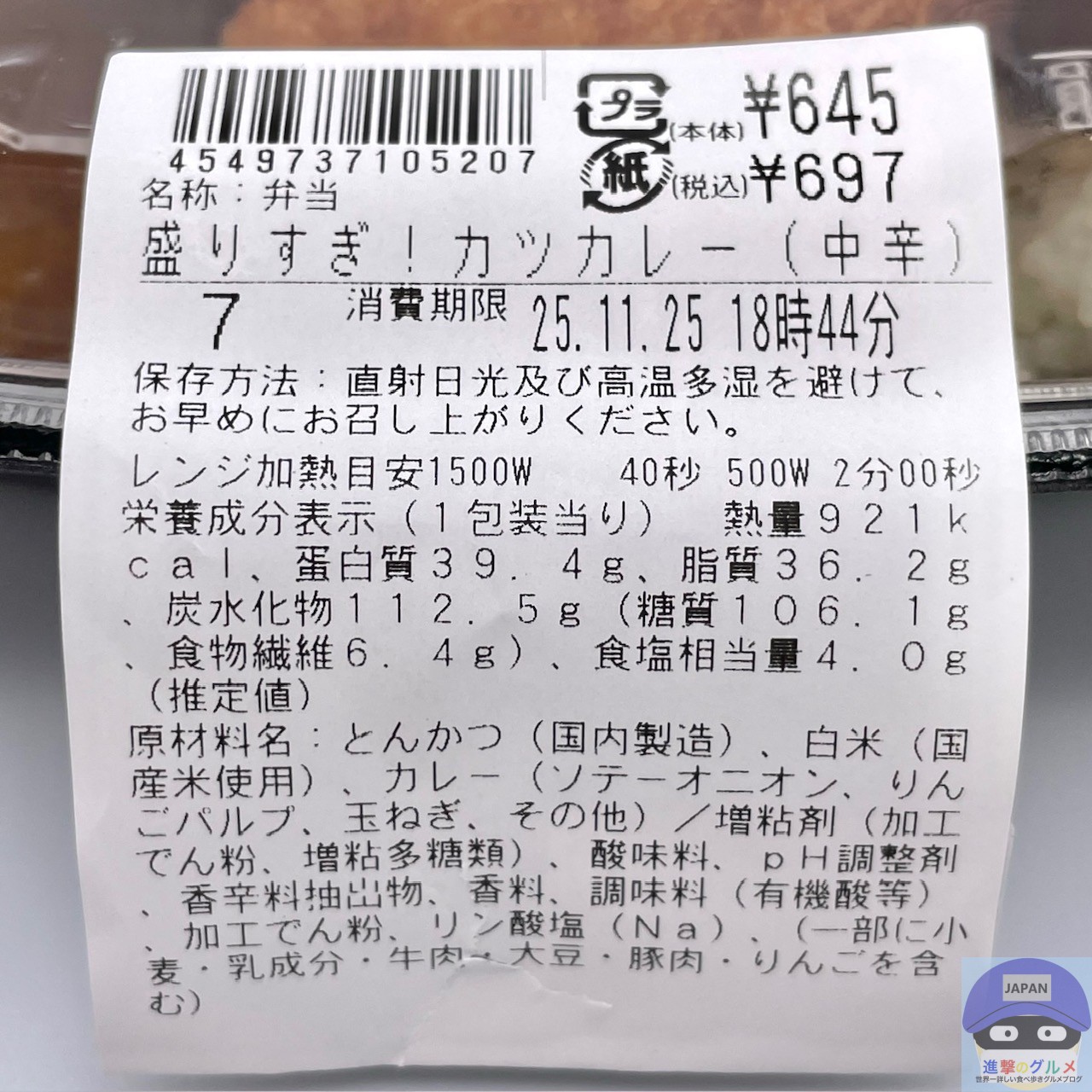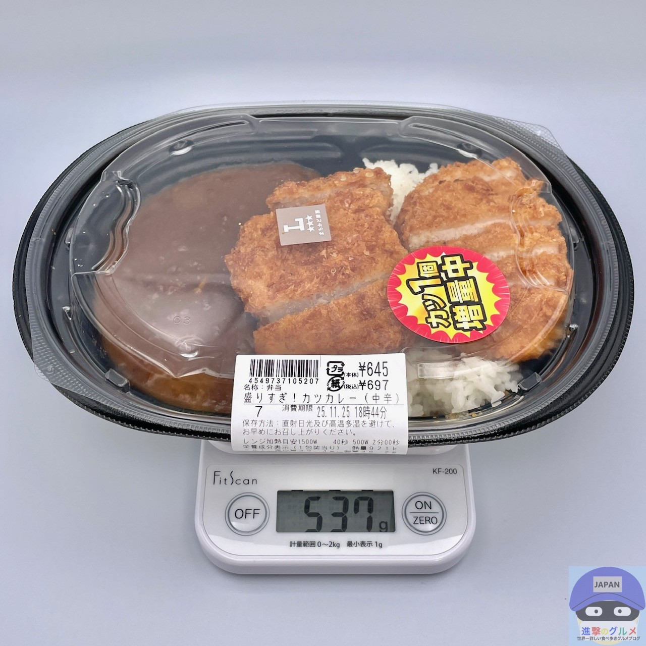 カロリーは921kcal、重さは容器を含めて537gです。