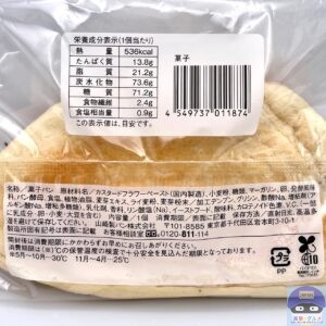 少しふんわりしたパン生地に、もったりした口当たりのクリームたっぷり、まろやかな風味ある甘みです。