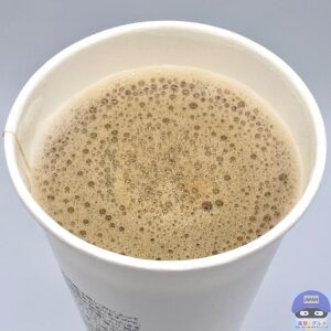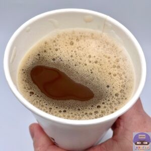 また、濃いめ・普通・薄め、砂糖とミルクの有無を聞かれ、普通、砂糖とミルク1つずつをお願いし、お店の人が入れて混ぜた状態で受け取ります。