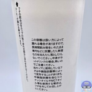 コーヒー豆の説明、容器の注意書きが書かれています。